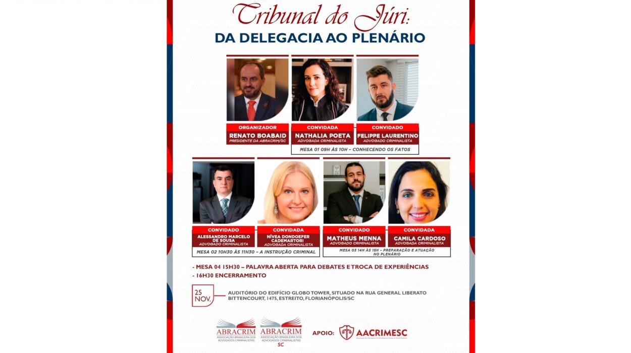 A Associação Brasileira dos Advogados Ciminalistas de Santa Catarina (Abracrim-SC), realizará, no próximo dia 25 de novembro, o evento Tribunal
